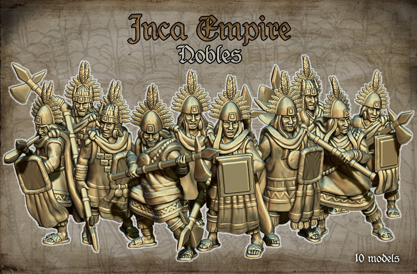 15mm Inca Empire Nobles, Consists of 10 Warriors. (Bases not included)