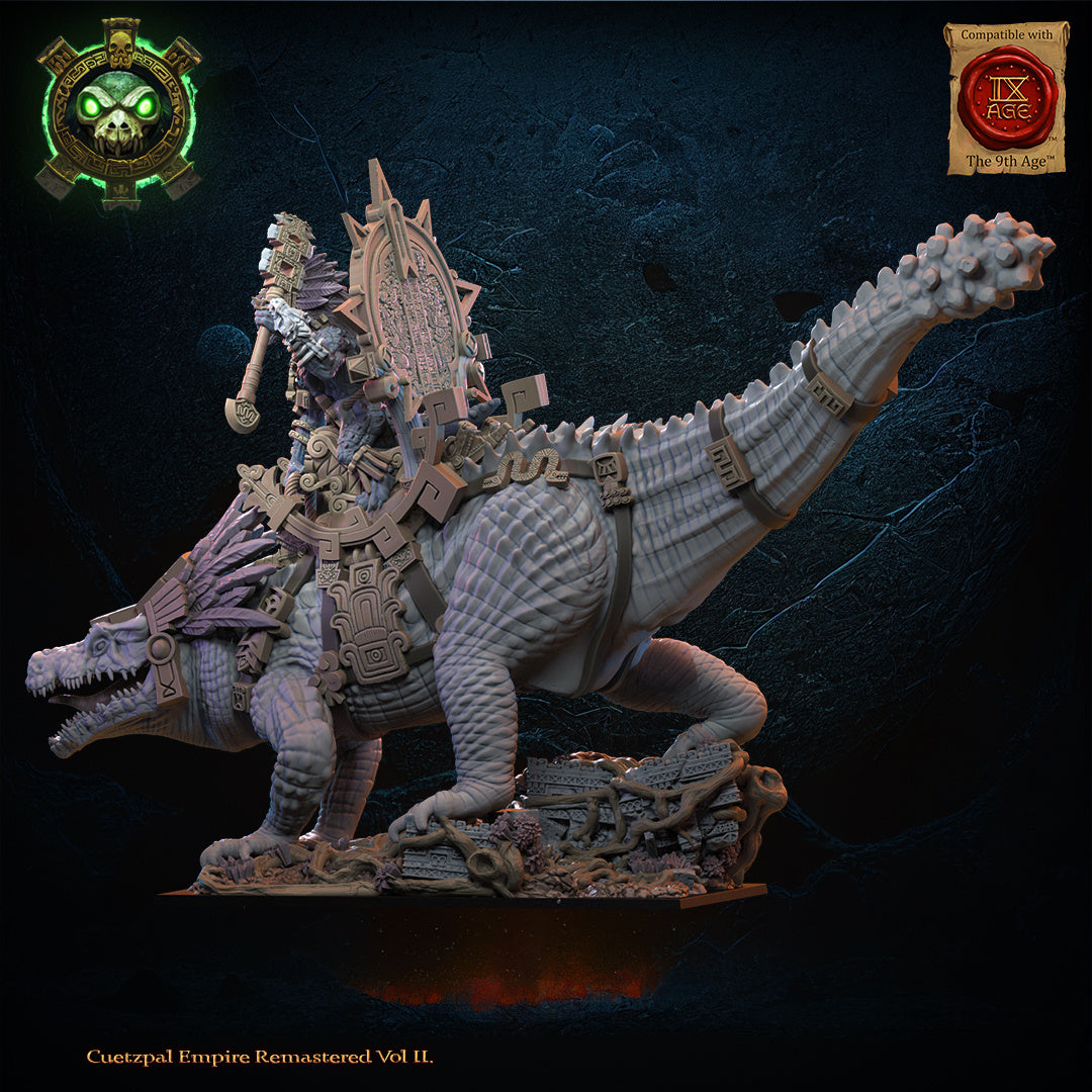 28mm Citlallicue, Cipactli Heroine on Deinosuchus - Saurian Ancients. (Bases not included unless on scenic base)