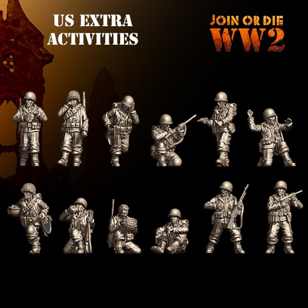 28mm US Army G.I. Extra Activities Poses, 12 highly detailed resin models. (Bases not included)