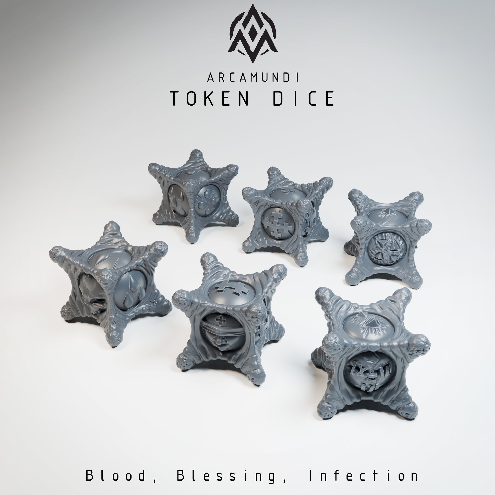 Blood, Bleessing, Infection token D6, consists of 6 highly detailed resin dice. (Bases not included)